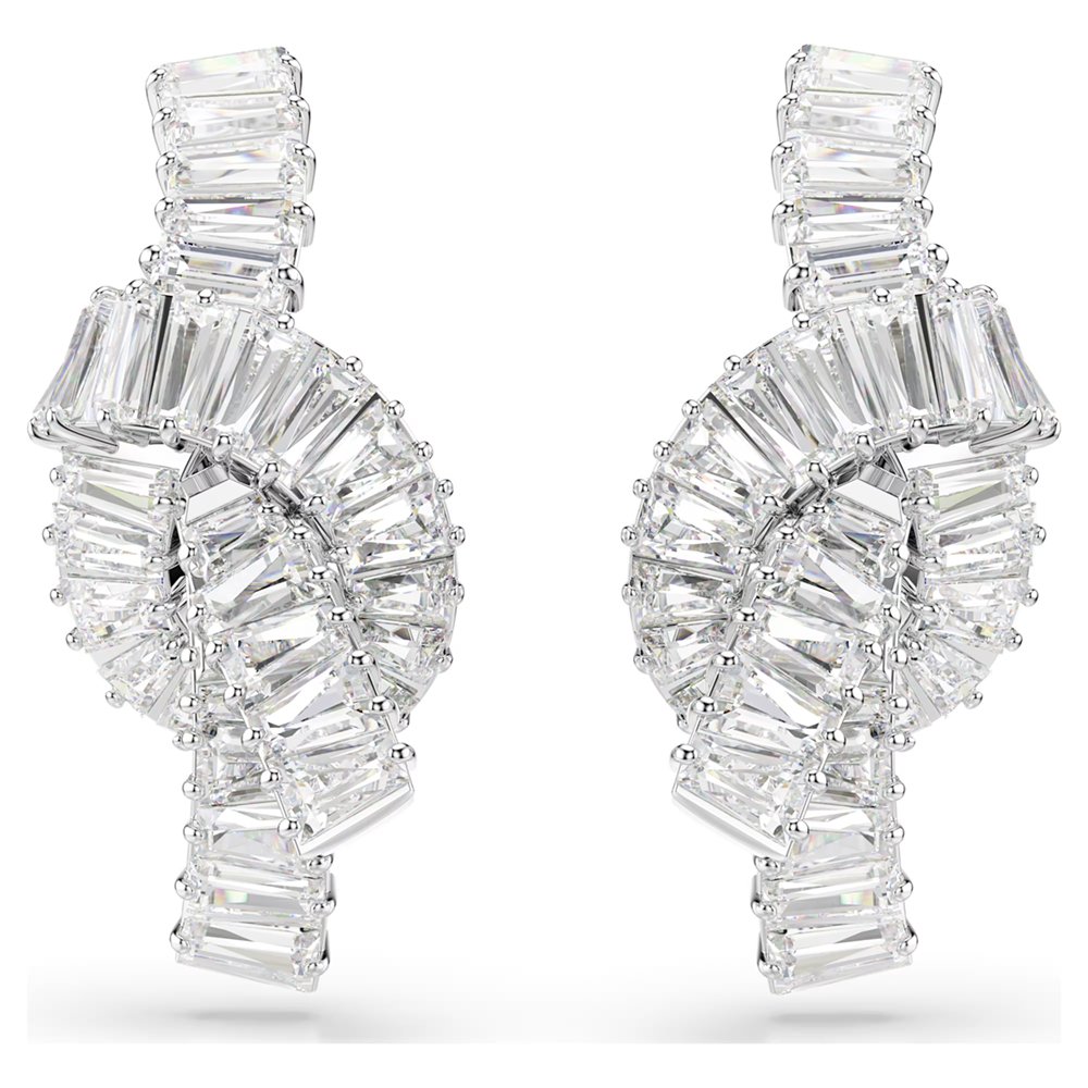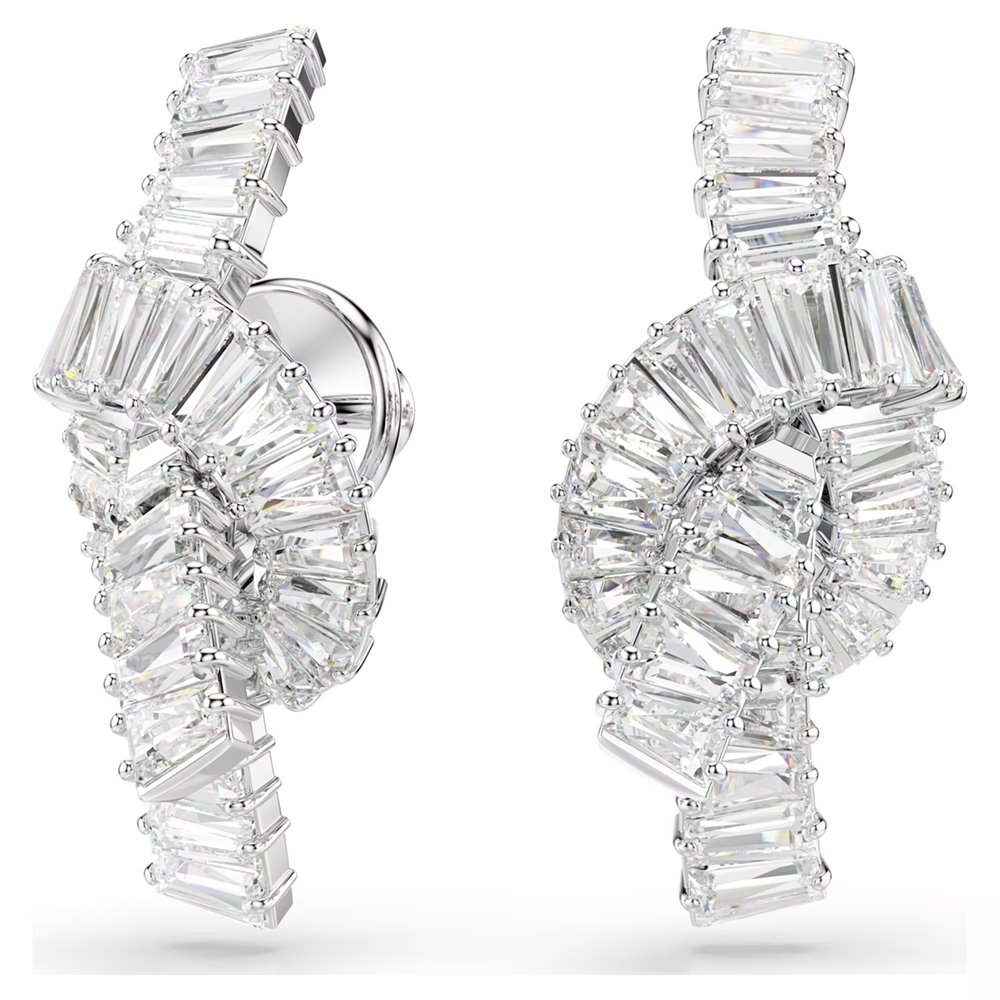 Swarovski Matrix earrings Baguette cut, Knot, White, Rhodium plated 5727040
