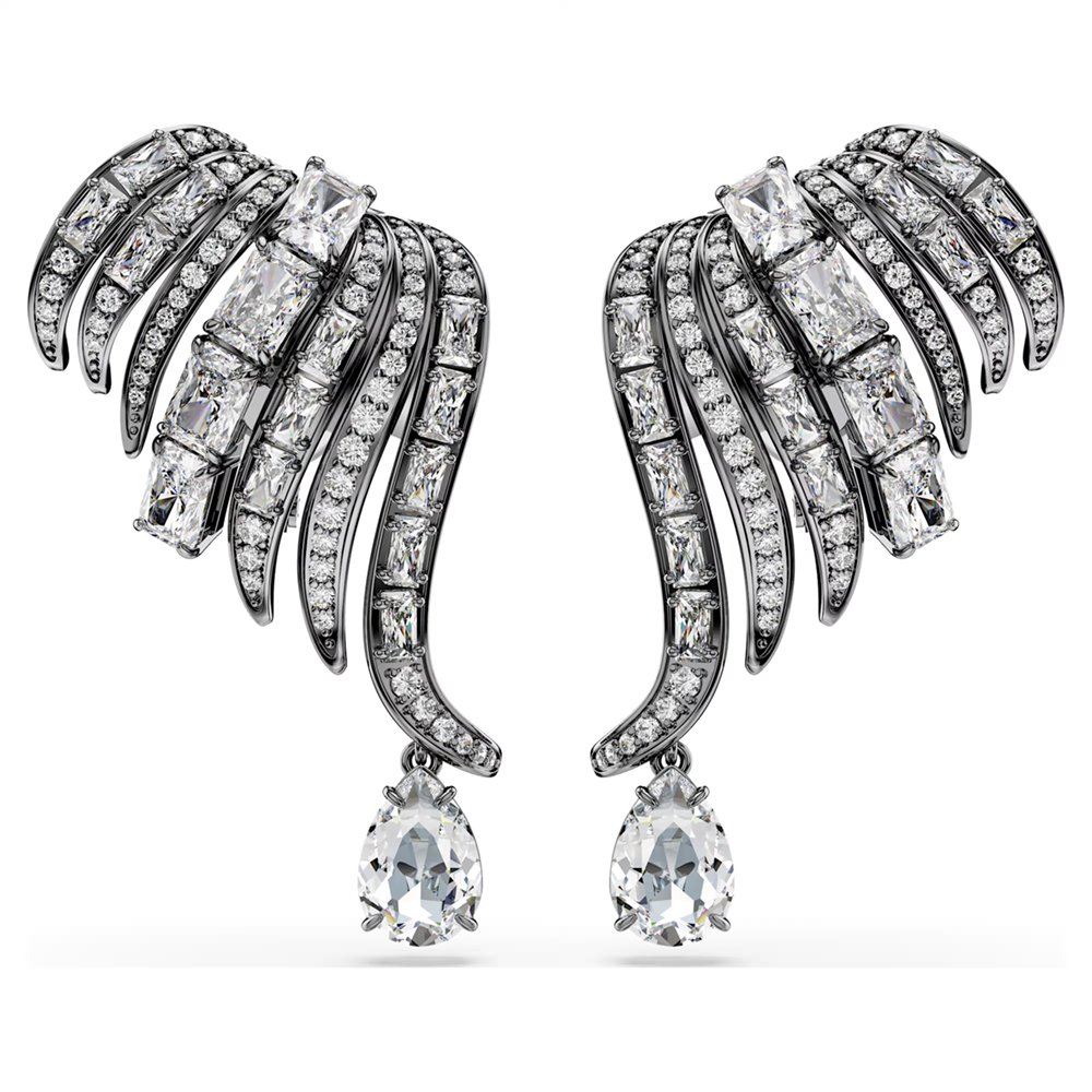 The Vienna Collection celebrates 130 years of creativity and savoir-faire at Swarovski. Honoring that heritage, these ruthenium plated Swarovski The Vienna Collection ear cuffs evoke the graceful feathers of a swan. Each piece is decorated in clear crystals and Swarovski Zirconia, presented with an elegant mix of cuts in a channel setting. Two pear-shape crystals also hang beneath for extra radiance. Conveying a sense of movement and sophistication, these ear cuffs are a wondrous tribute to Swarovski’s iconic mastery of light.